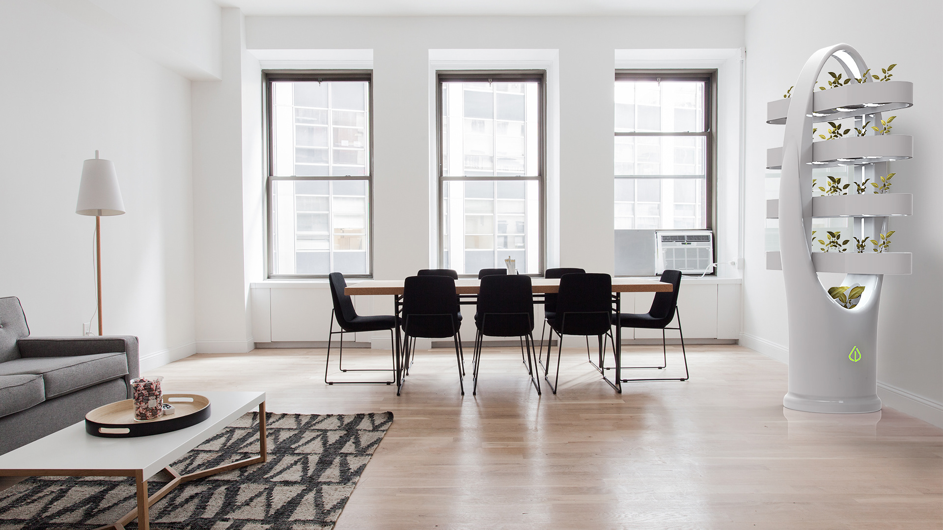 The pots can contain up to two plants, are removable and all linked to the watering system. The slot located right on the water tank is supposed to contain